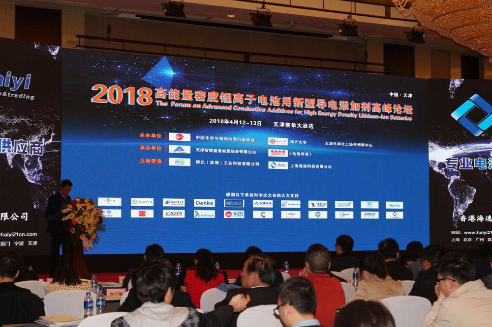 為了進一步推進高能量密度鋰離子電池技術進步及產業(yè)競爭力提升,滿足IT、電動汽車和儲能持續(xù)發(fā)展對電池性能提升迫切需求,中國化學與物理電源行業(yè)協會于2018年4月12-13日在天津舉辦了“2018年高能量密度鋰離子電池用新型導電添加劑高峰論壇”,超過160家企業(yè),340多位嘉賓出席了本次大會,其中材料企業(yè)90多家,電池企業(yè)30多家,其他相關設備、貿易企業(yè)40多家,堪稱電池行業(yè)內關于導電劑專題的一次盛會。