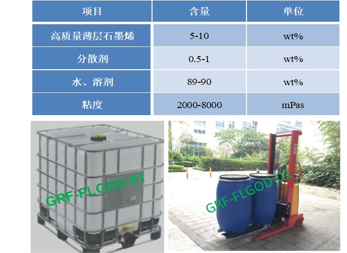 針對涂料應用開發(fā)的高質量薄層石墨烯漿料產(chǎn)品為高質量薄層石墨烯的在水性和油性介質中的均勻穩(wěn)定分散液。分為高質量薄層石墨烯分散液(GRF-FLGOD)和高質量薄層石墨烯水性分散液(GRF-FLGAD),該產(chǎn)品潔凈度高、分散穩(wěn)定性好。