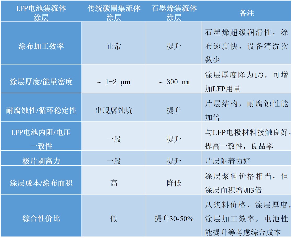 表1. 高質(zhì)量薄層石墨烯集流體涂層Vs.傳統(tǒng)碳黑集流體涂層對比優(yōu)勢